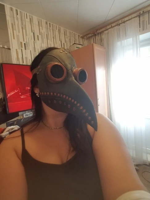 Хорошая маска, мягкая, удобная. Но дышать в ней трудно (отверстия в клюве маленькие, при вдохе клюв сжимается) Но это решаемо. В клюв кладу веточки мяты и полынь. В общем для похода в общественные места самое то. Nice mask, soft, comfortable. But it is difficult to breathe in it (the holes in the beak are small, when you inhale the beak shrinks) But this can be solved. I put sprigs of mint and wormwood in the beak. In general, for a trip to public places is the most it.