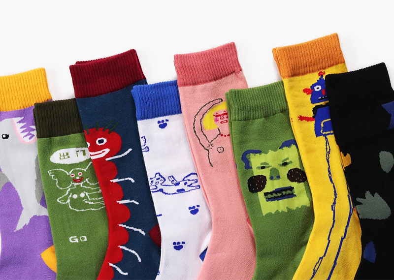 Женские и мужские хлопковые носки, милые носки в стиле Харадзюку для скейтборда и граффити, унисекс, Счастливого дизайна