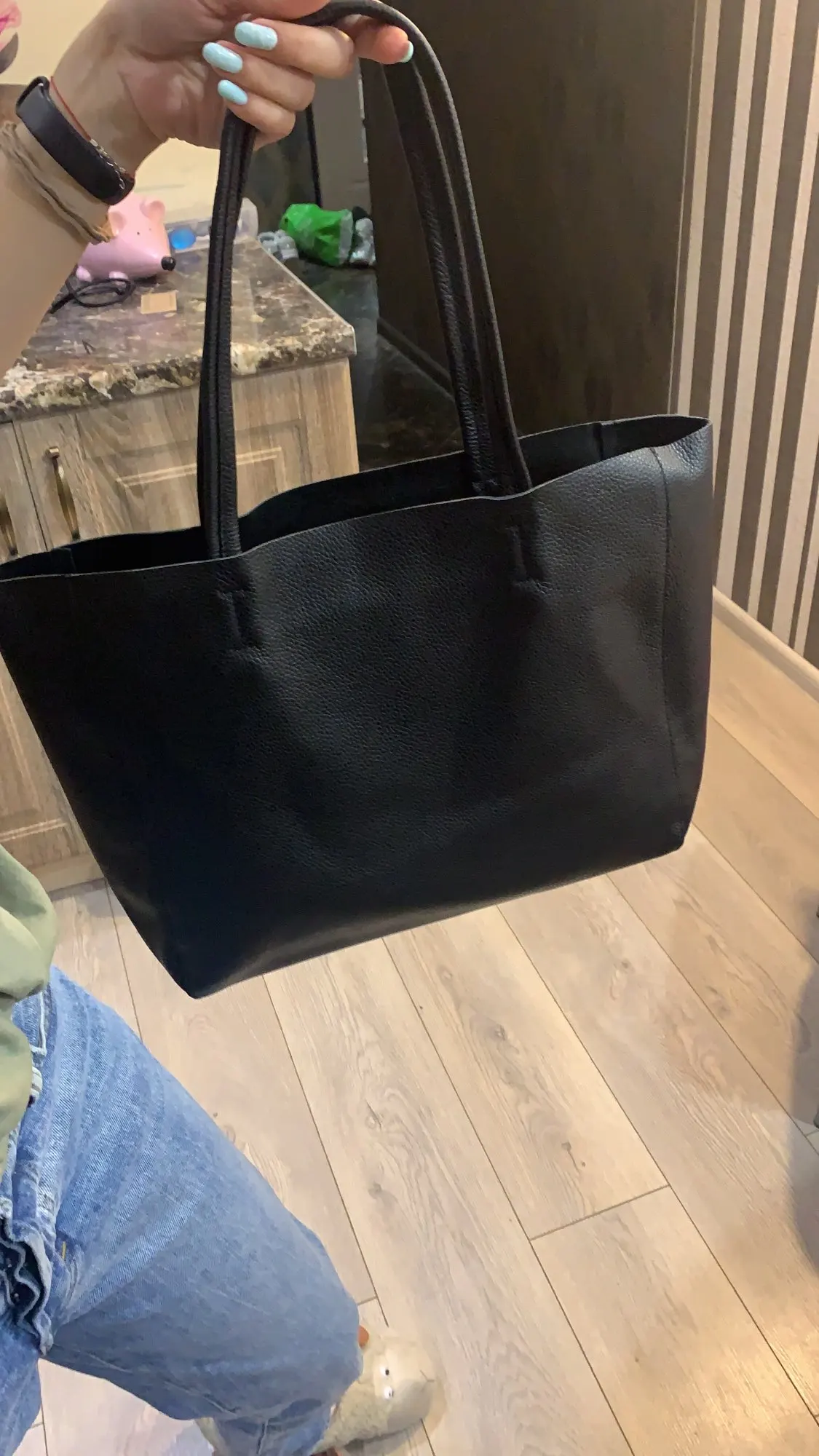 Он прибыл в Канаду через 3 недели, я буду говорить, что он очень быстрый, поэтому Доставка 5 звезд... Я дал 3 звезды точности, потому что кожа не ощущается как хорошая коровья кожа, возможно, это только моя сумка. 4 изделия из кожи отличаются по качеству: один из них прочный, другой мягкий (пожалуйста, смотрите на фото. 1)... Ремешки, кажется, пришиты с двух oppesote сторон... может быть, мне не везет, это только моя сумка... если это 50 CAD долларов, я дам 4 звезды, но это Сумка-тоут на 70 долларов, я бы ожидал, что качество будет немного лучше по сравнению с изображениями в Интернете...