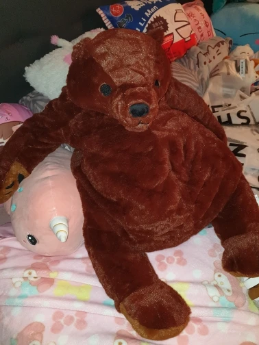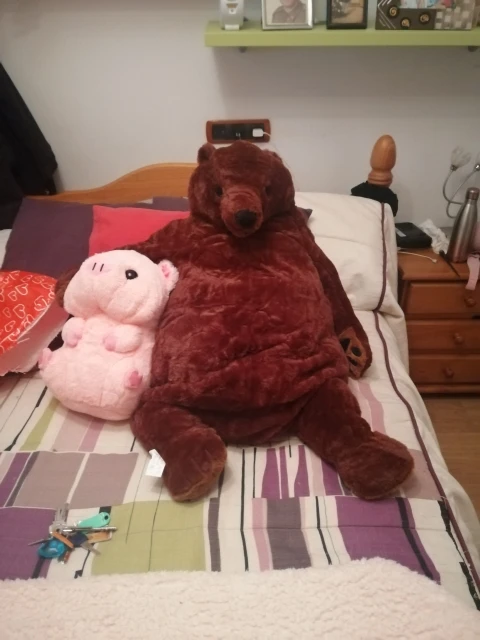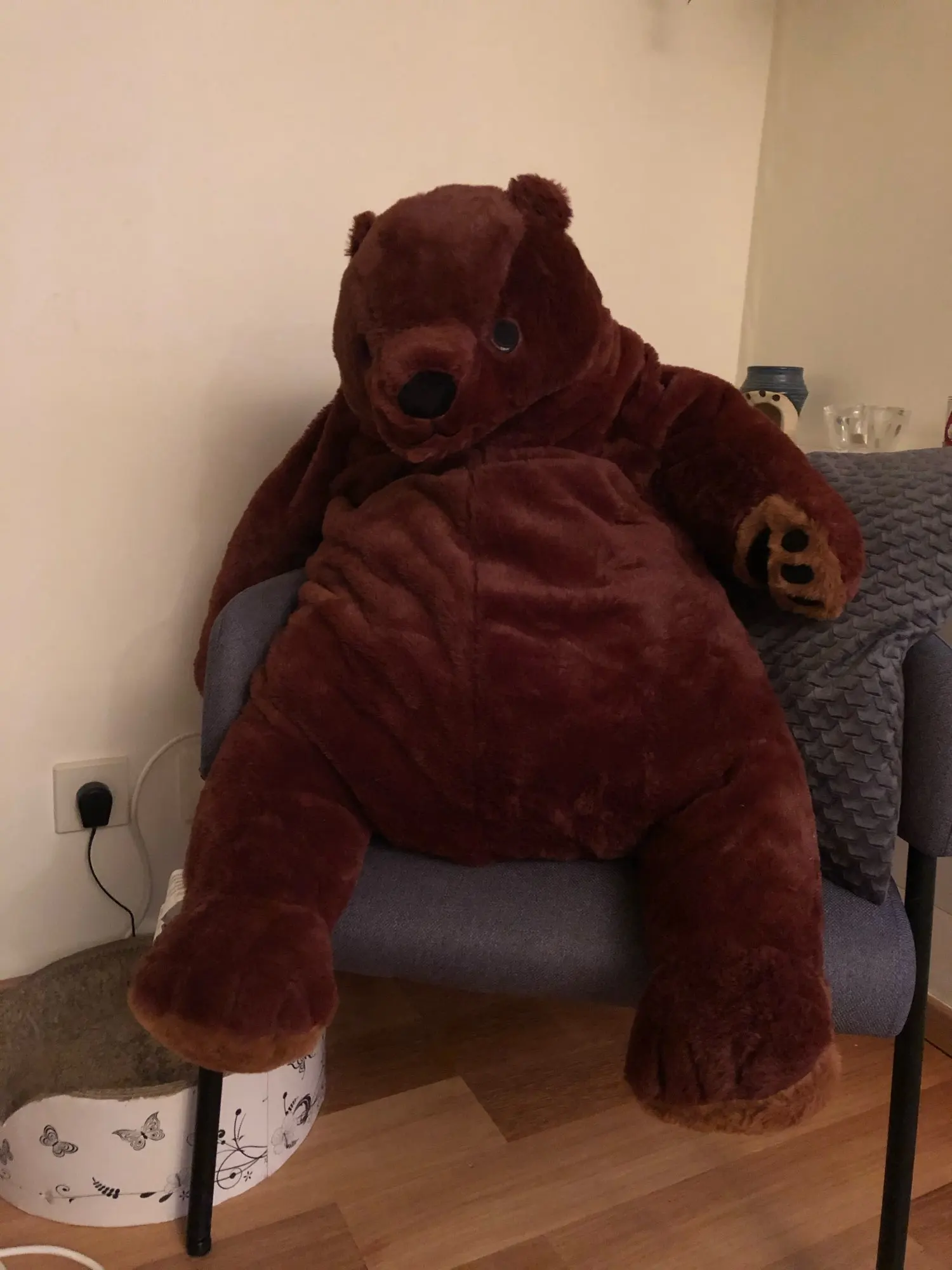 I got it early before the estimated delivery but the eyes are the only thing that bother me, they’re pretty big and mostly discolored. It were smaller and purely black it would’ve made it easier to convince others that it’s a real djungleskog bear from ikea. Overall he’s very soft, pretty stuffed and can fit my shirts well.
