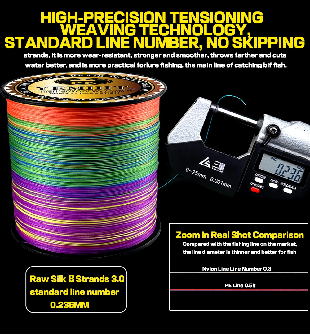 Плетеная рыболовная леска GHOTDA, 8 нитей, 1000500300100 м, 100% ПЭ