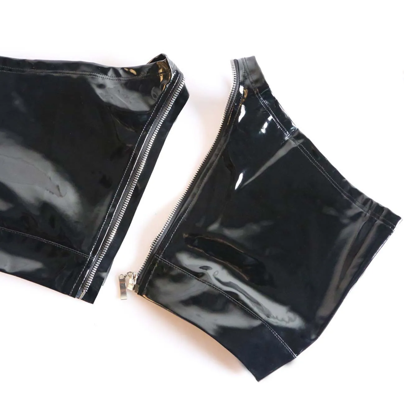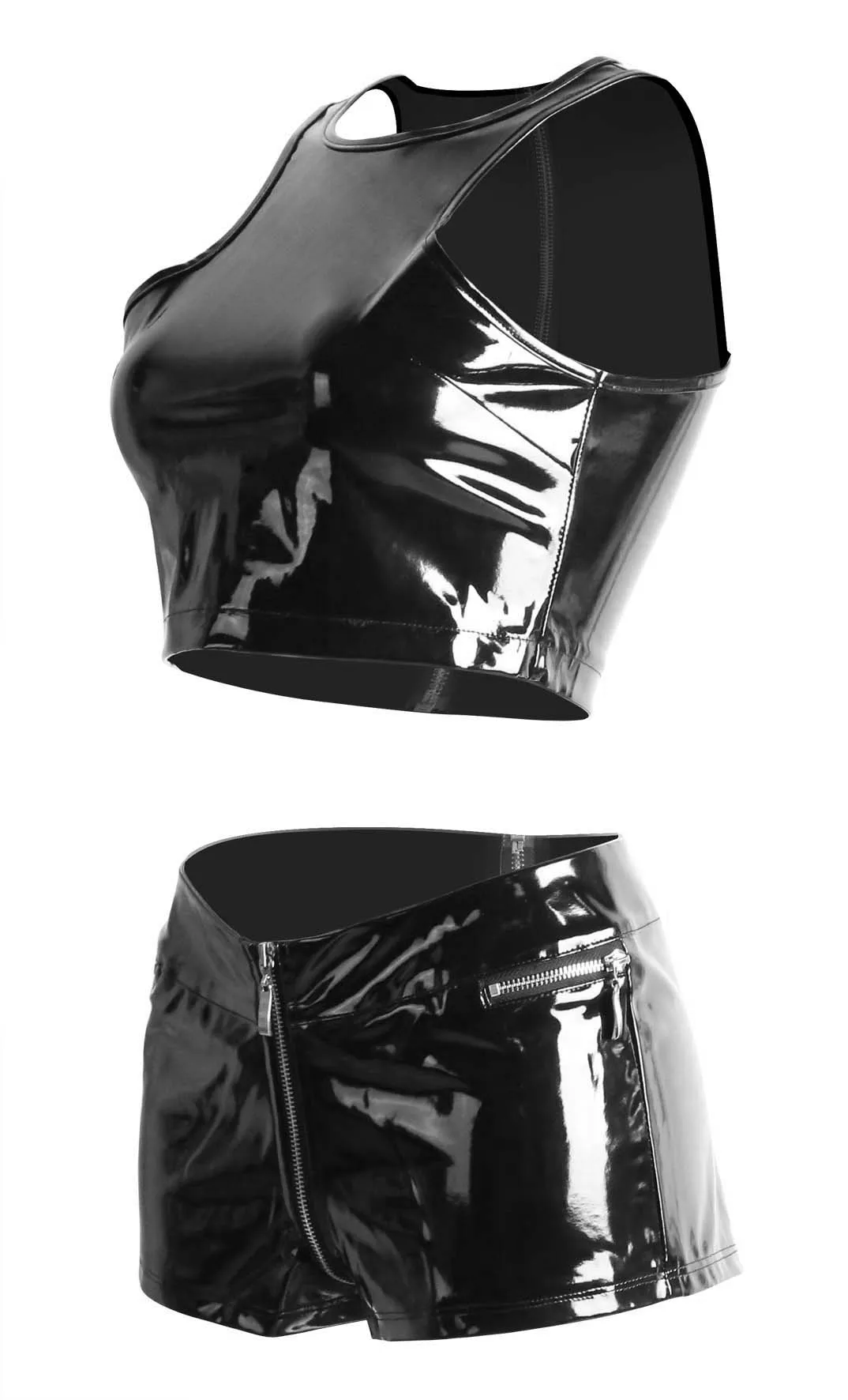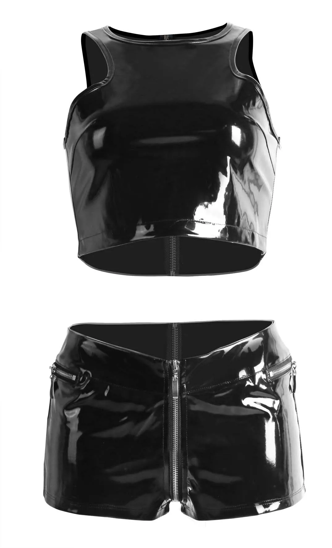 Лидер продаж, Женский костюм из ПВХ и кожи, топ и шорты в стиле сти...