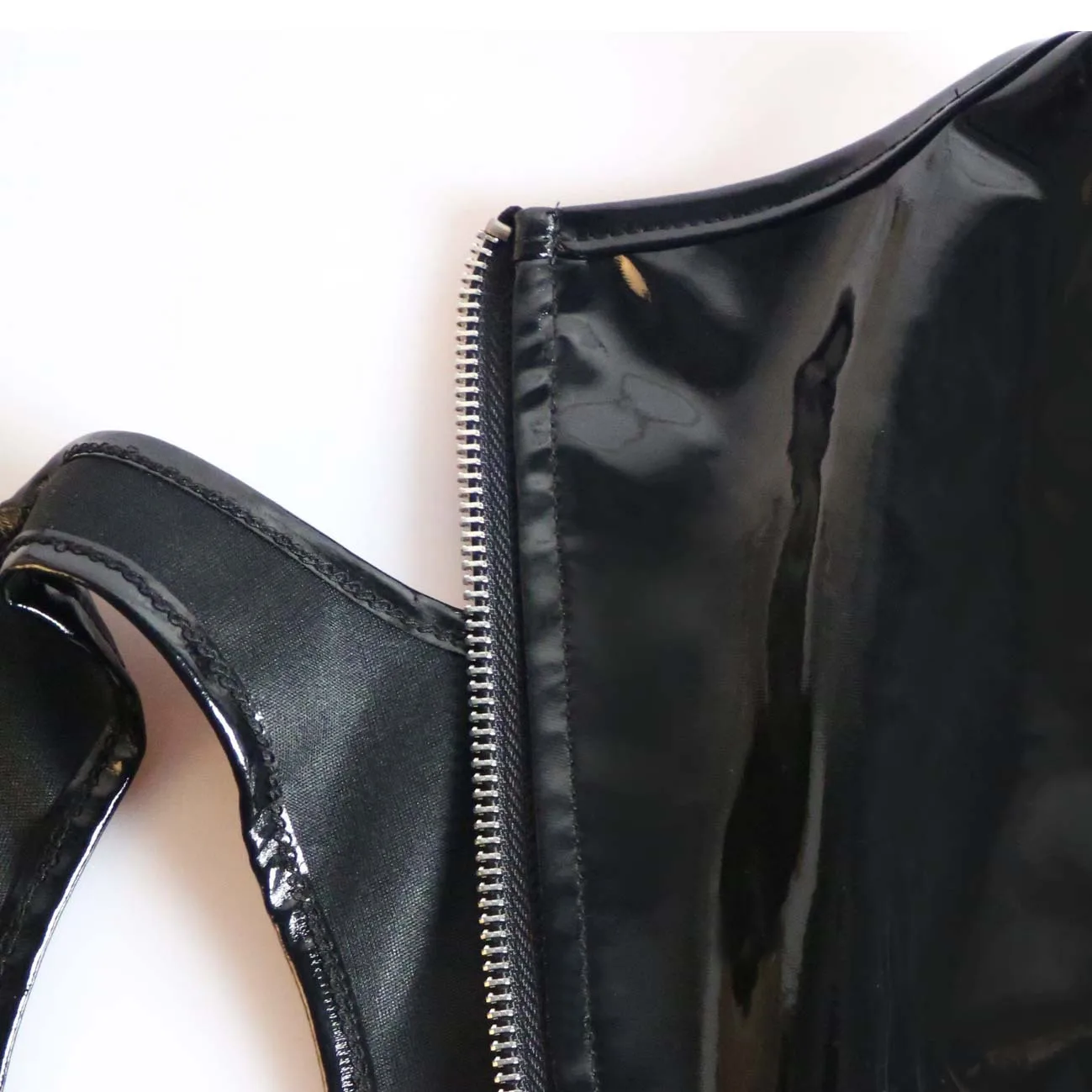 Женский короткий топ без рукавов из лакированной кожи в стиле стимп...
