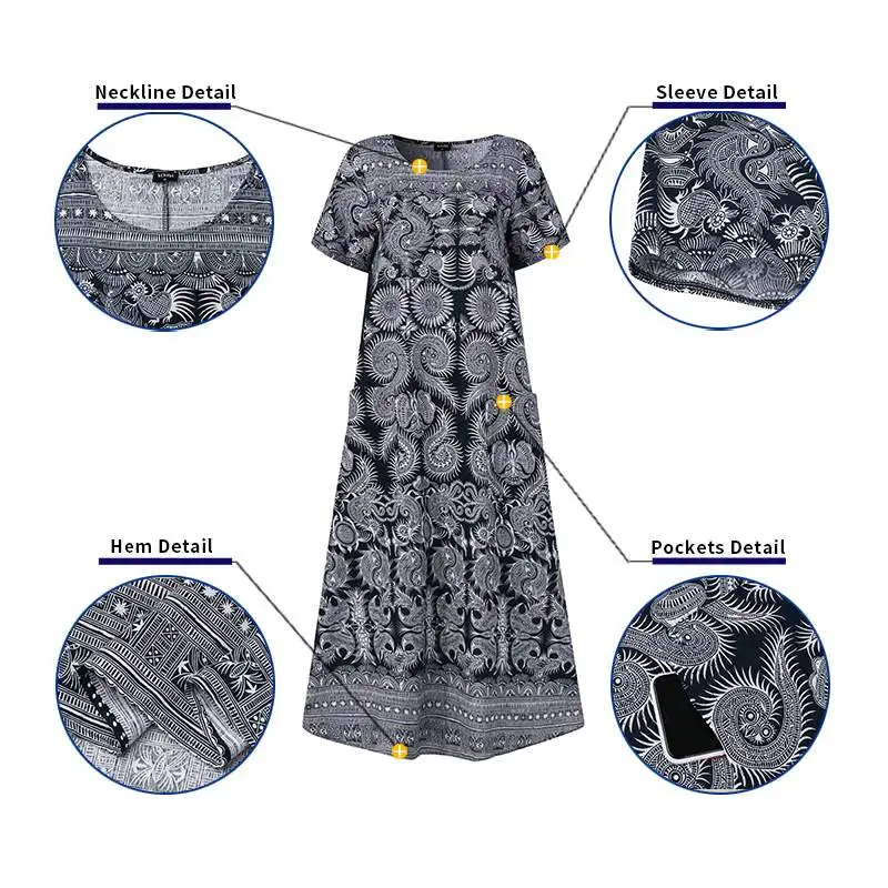 Номер моделиWomen Summer Short Sleeve Vintage Printed Dress