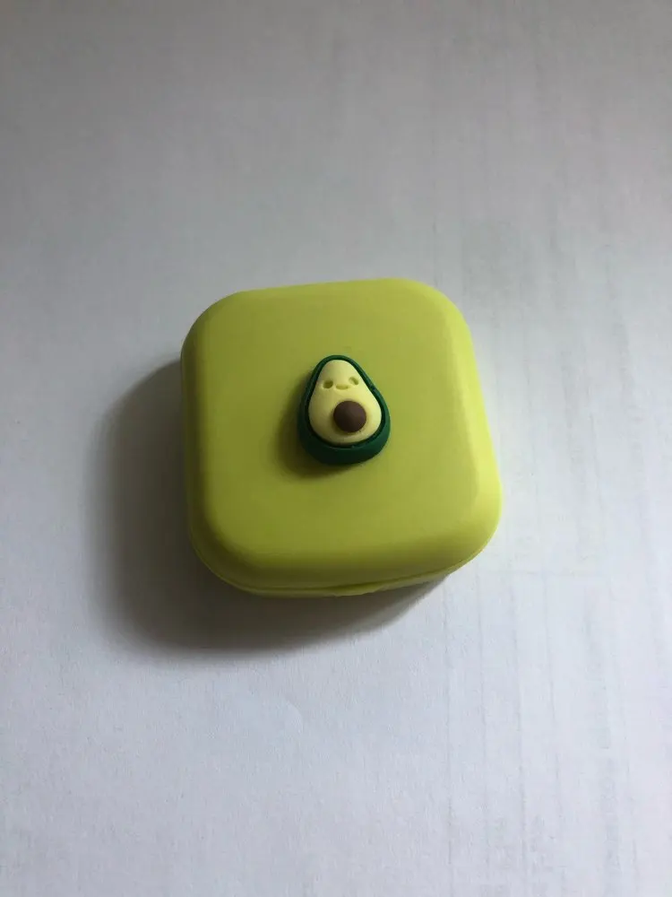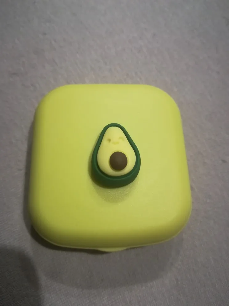 отличный контейнер для линз все как на картинке заказывала рандомный, пришёл с авокадо закрывается контейнер очень плотно и это хорошо