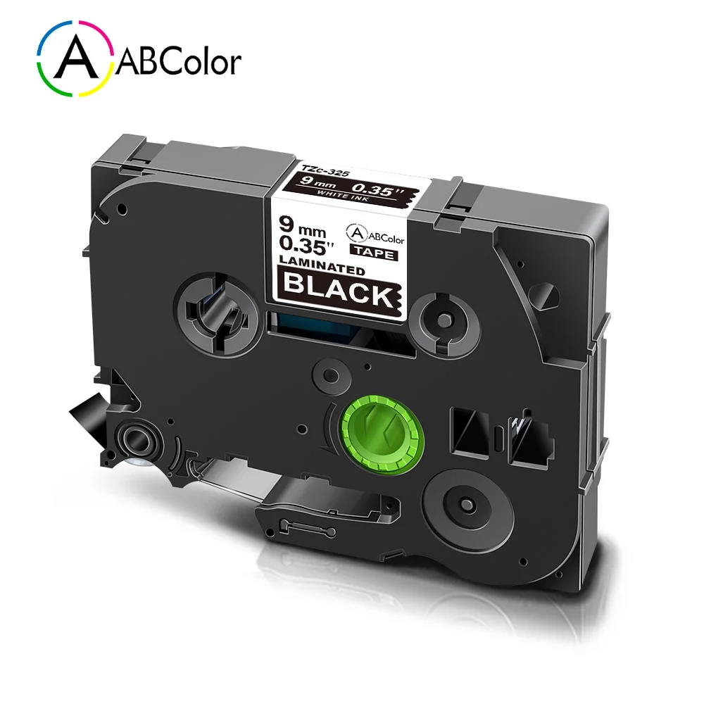 Лента для принтера 9 мм, совместимая с лентой 325, ламинированная этикетка, кассеткой для этикеток, белым на черном, для изготовления этикеток