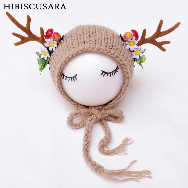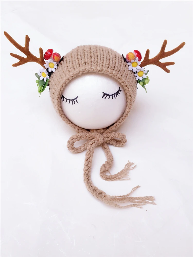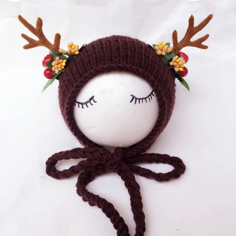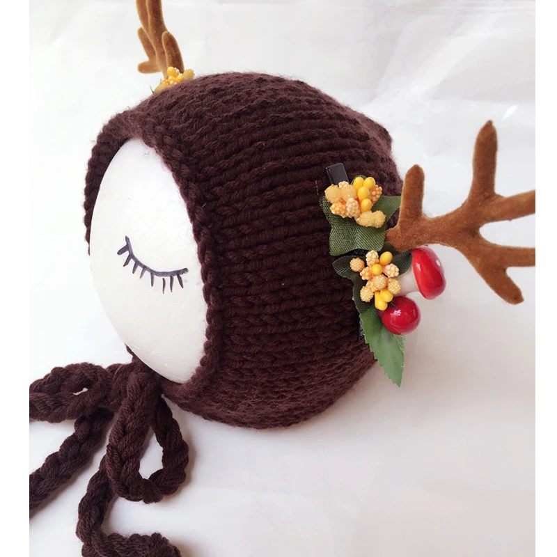 Очаровательная Женская вязаная детская шапка с оленем, детские шапки на Рождество, Рождество, праздник, фотография, шапка, фото, реквизит