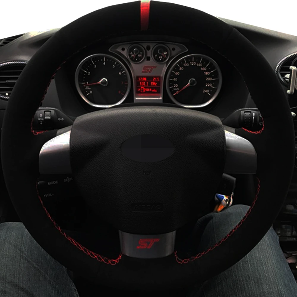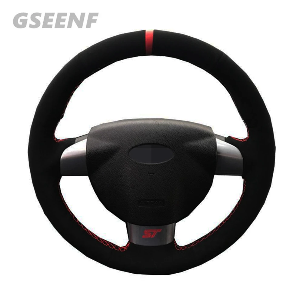 Автомобильные аксессуары для Ford Focus 2 2005-2011 (3 спицы), чехол на руль, черный, ручная работа, прошивка, пригодный для носки, мягкая и удобная замша