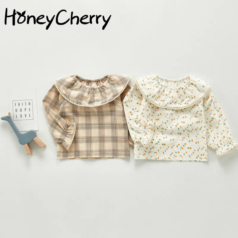 Детская рубашка на подкладке HoneyCherry, новая осенняя рубашка с длинными рукавами для новорожденных девочек, блузки для девочек