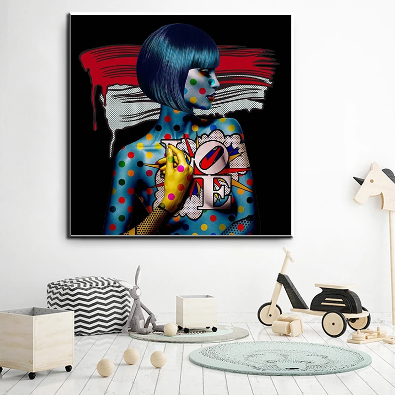 Граффити поп-арт Женская Картина на холсте Современная Настенная фо...