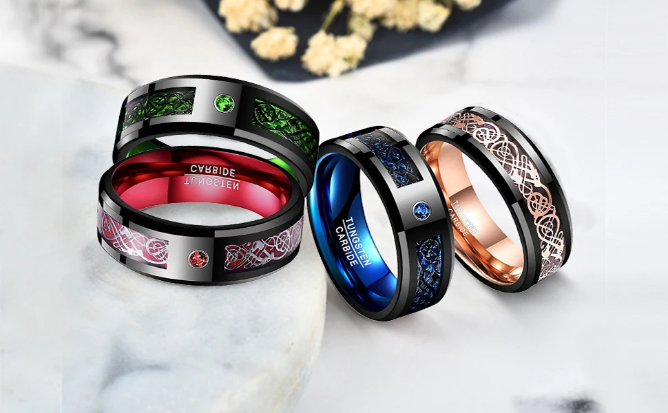 КольцомМатериал: Вольфрам карбида Ширина кольца: 8 мм Размеры колец: доступны в стандартных размерах колец США от 5 до 15, включая половинные размеры