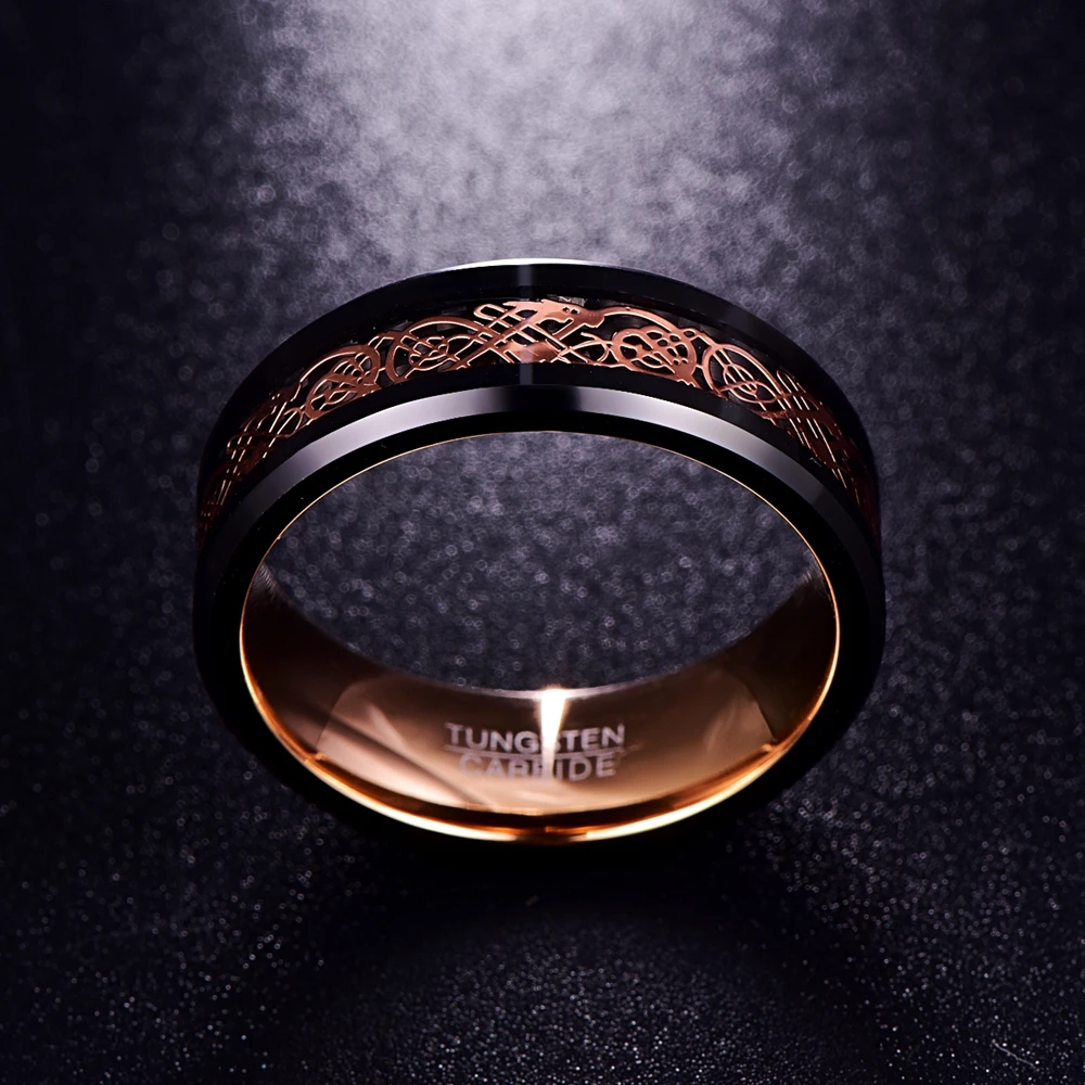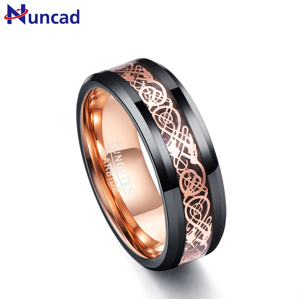 Мужские кольца Nuncad 8 мм Размер 7-12 розовое золото Дракон узор вольфрамовое стальное кольцо черный цвет кольцо ювелирные изделия