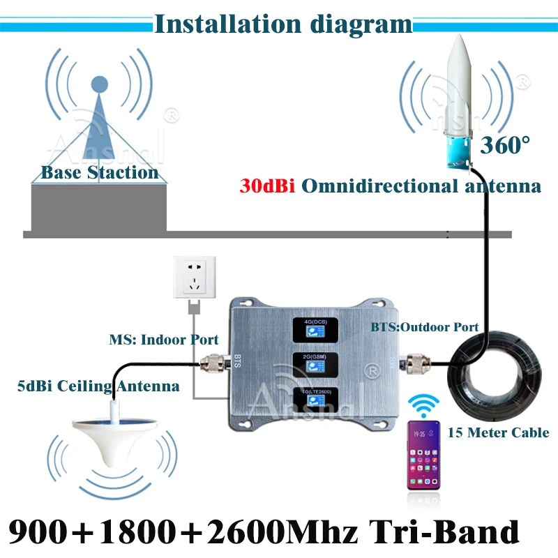 Frequency BandTri-Band 900 1800 2600Mhz 4G Mobile Signal Booster