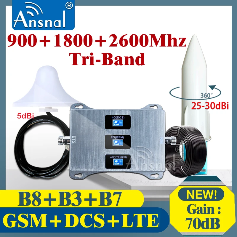 Новое обновление в 2020, 900 1800 2600 МГц трехполосный мобильный сотовый усилитель