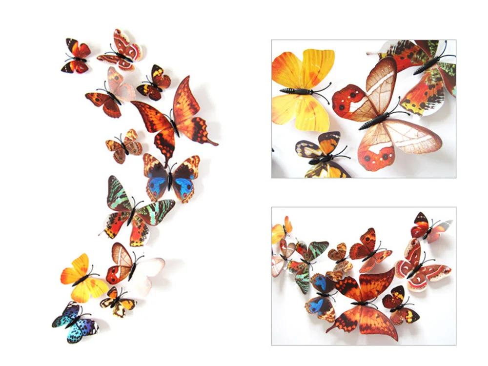 12 шт.лот 3D наклейки на стену из ПВХ Магнитные бабочки DIY наклейк...