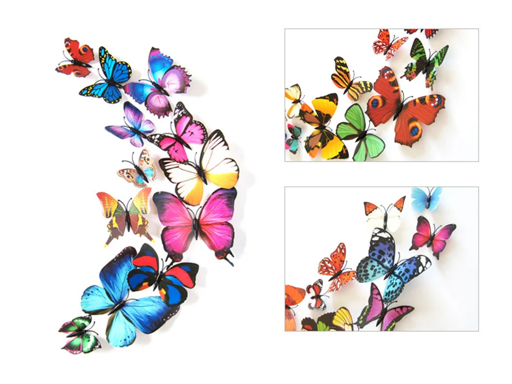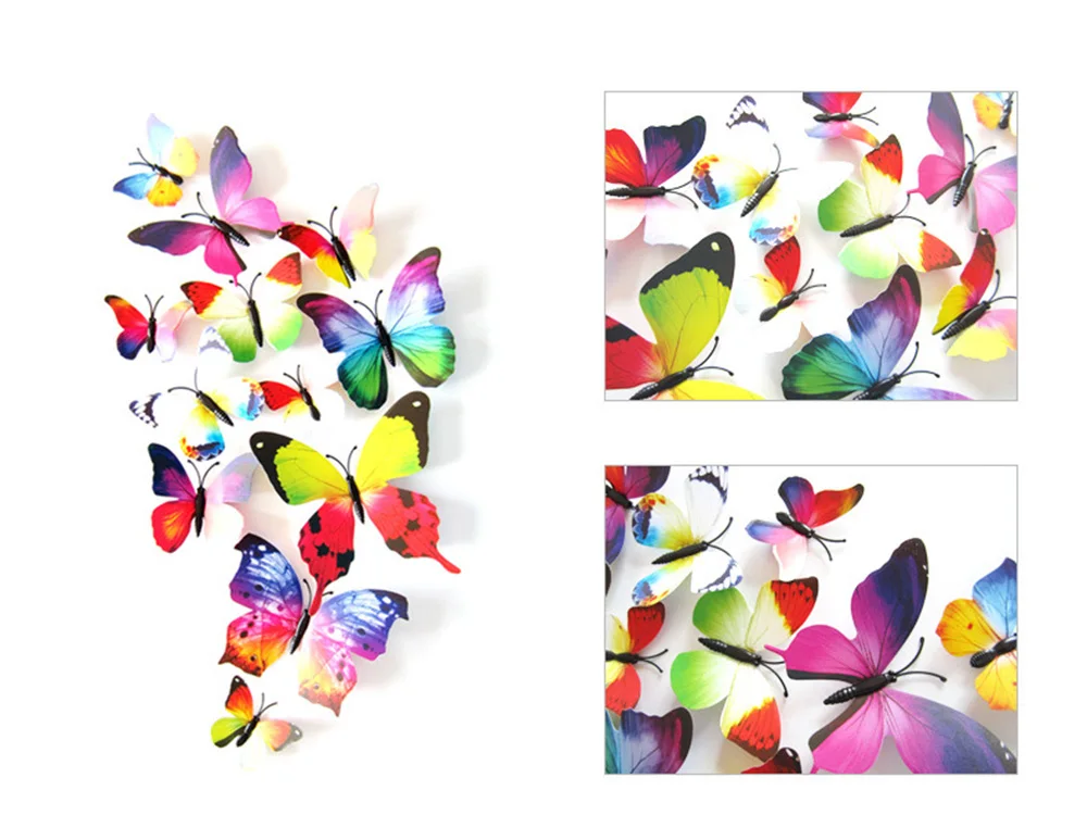12 шт Разноцветные Яркие бабочки 3D наклейки на стену для свадьбы д...