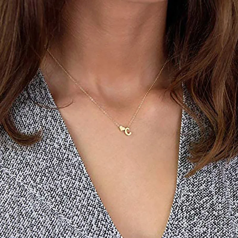 Модное ожерелье с маленьким изящным сердцем и инициалом, ожерелье с...