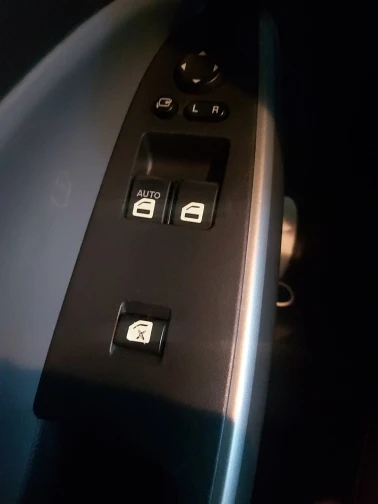 Панель управления дверью автомобиля, окна, светящаяся наклейка на к...