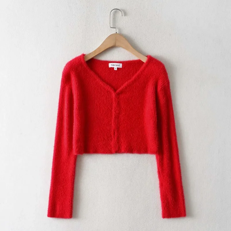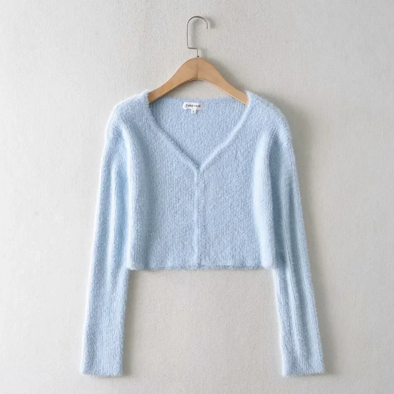 Женский свитер-кардиган в Корейском стиле, укороченный Топ с длинным рукавом, зеленые кардиганы, винтажные вязаные свитера, корейский укороченный свитер, белый женский топ