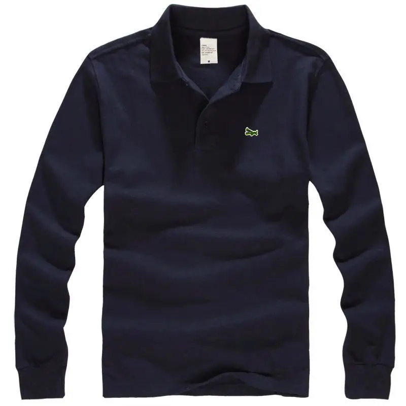 Рубашка-поло мужская с длинным рукавом, Повседневная брендовая тенниска с вышивкой, лацканами, S-4XL, 100% хлопок, осень
