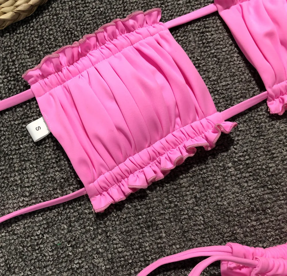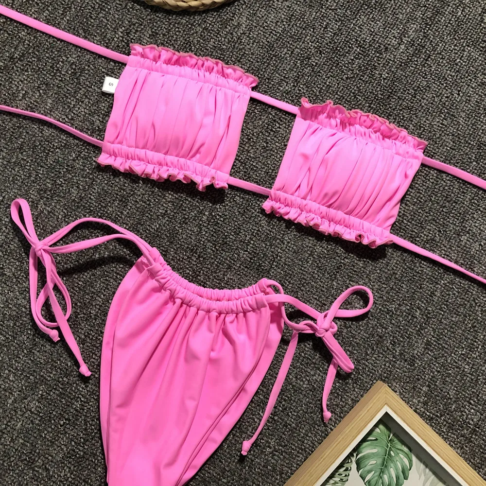 Соблазнительное бикини 2021, плиссированный купальник-бандо, женски...