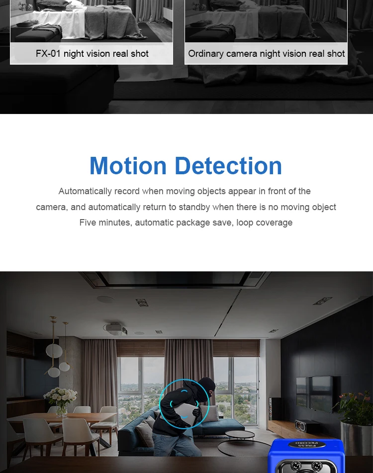 Мини-камера ночного видения 1080P HD, инфракрасная камера с мини-камера мониторинга безопасности, долгий срок службы аккумулятора, с датчиком движения