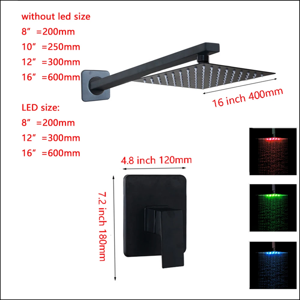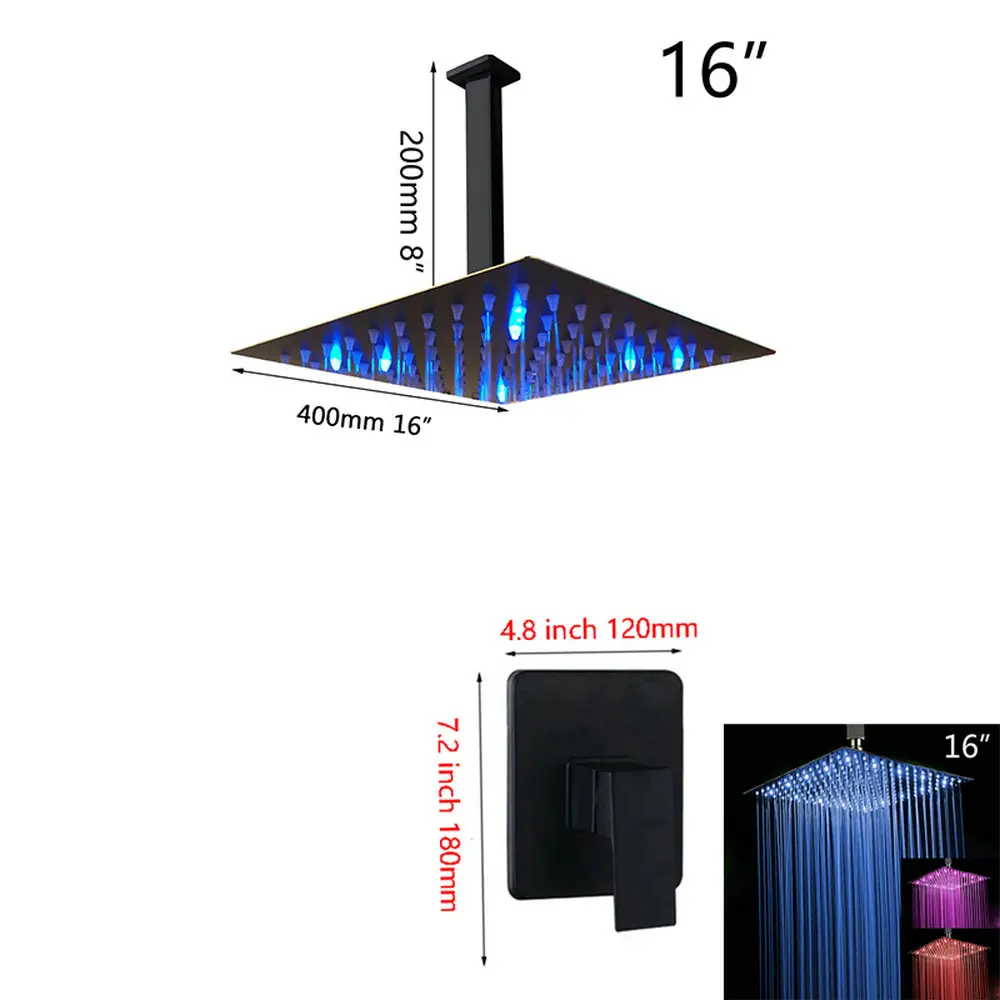 Насадка для душа черная, 81216 дюймов, со светодиодный кой