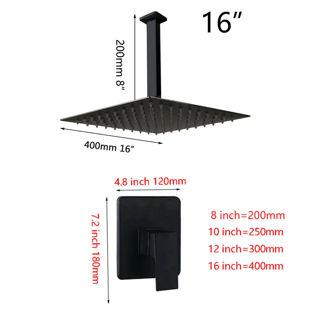 Дождевая насадка для душа Monite, 8, 10, 12, 16 дюймов, матовый чер...