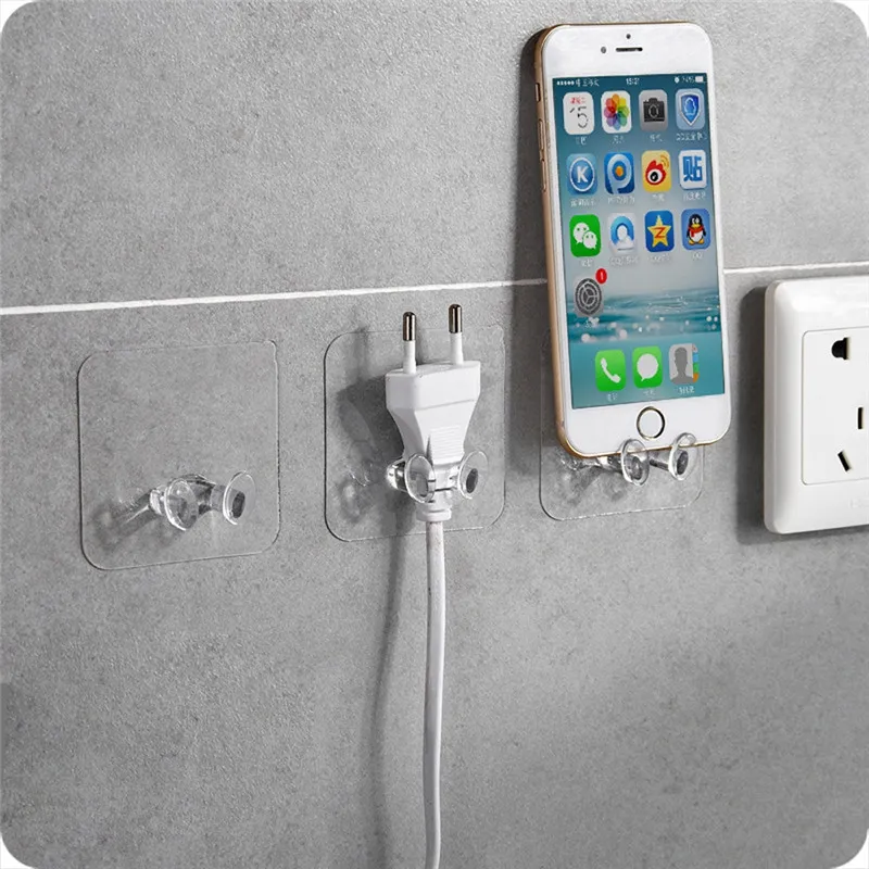 Универсальный настенный держатель для телефона, бесследный липкий настенный крючок для хранения USB-кабеля, держатель розетки, клейкая вешалка для домашнего офиса