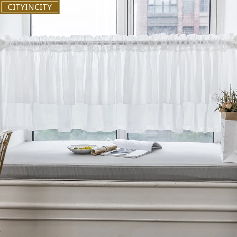 Двухслойная занавеска CITYINCITY для кухни, белая полупрозрачная прозрачная Тюлевая Короткая занавеска для бара, домашний декор на заказ