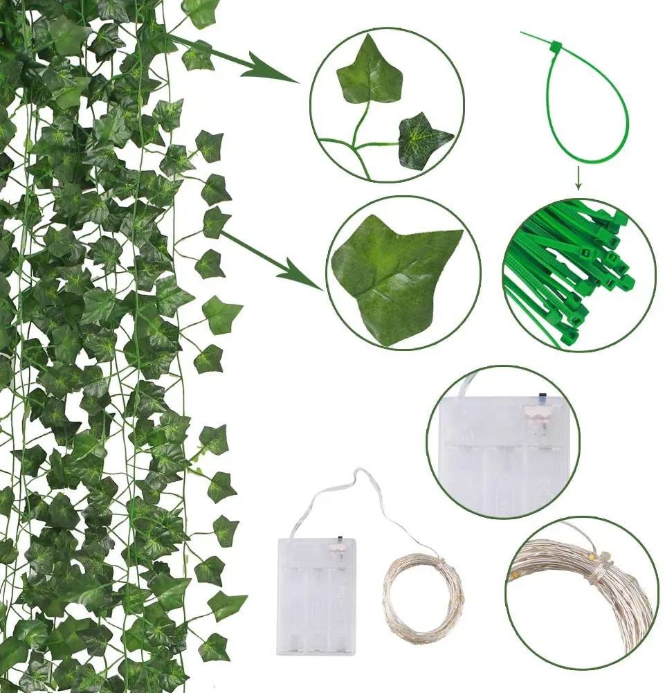 100 светодиодный светильник с 12 упаковками, Искусственный лист плюща, растения, лоза, подвесная гирлянда для свадьбы, дома, сада, офиса, декора стен