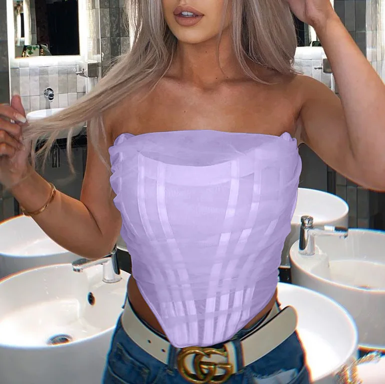 Винтажный укороченный Топ для женщин на плечо без рукавов прозрачные сетчатые летние топы сексуальный обрезанный корсет Белый 2020