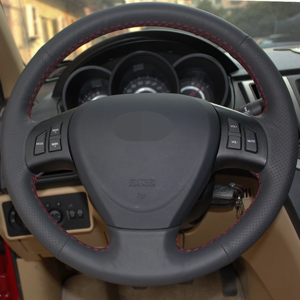 DIY ручной работы черного цвета из искусственной кожи чехол рулевого колеса автомобиля для Защитные чехлы для сидений, сшитые специально для Chery Fulwin 2 2013-2016 A3 2010-2012