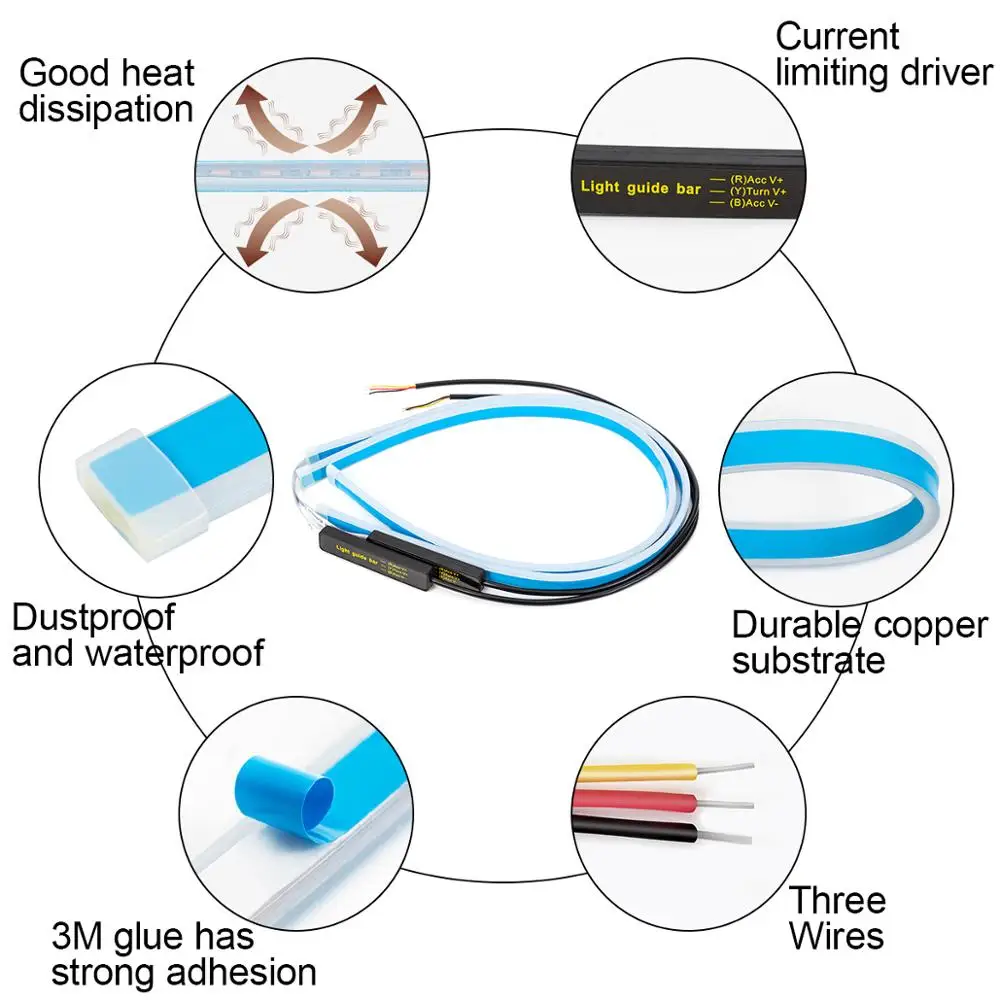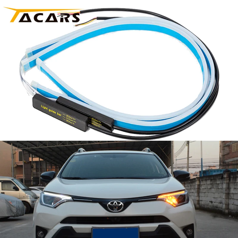 Дневные ходовые светильник, 2 шт., водонепроницаемые, гибкие, универсальные, автомобисветодиодный, светодиодные ленты, стоп-сигнал поворота