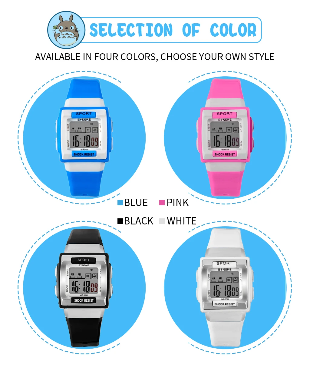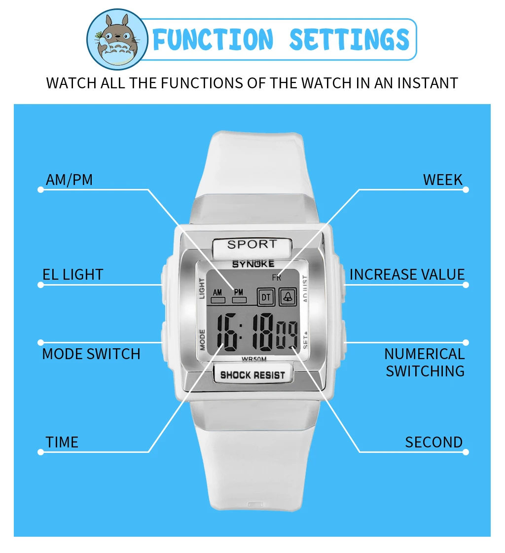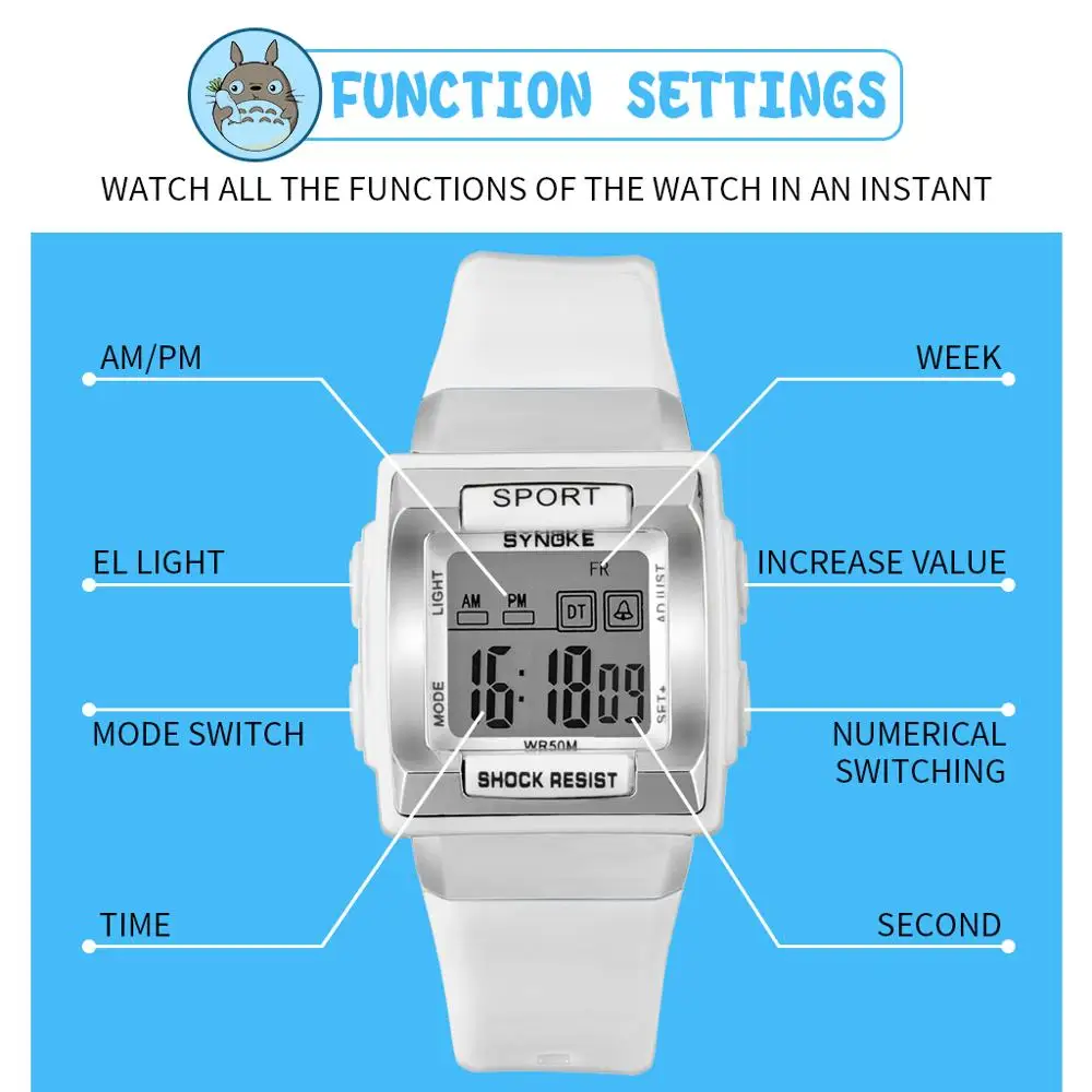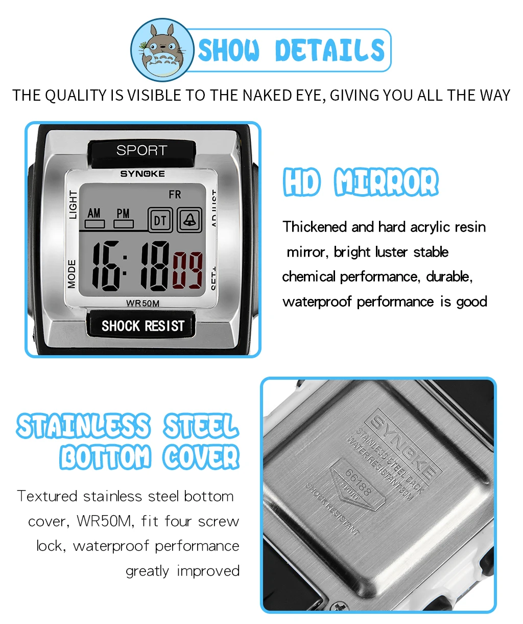 Светодиодные электронные цифровые часы SYNOKE для мальчиков, водоне...