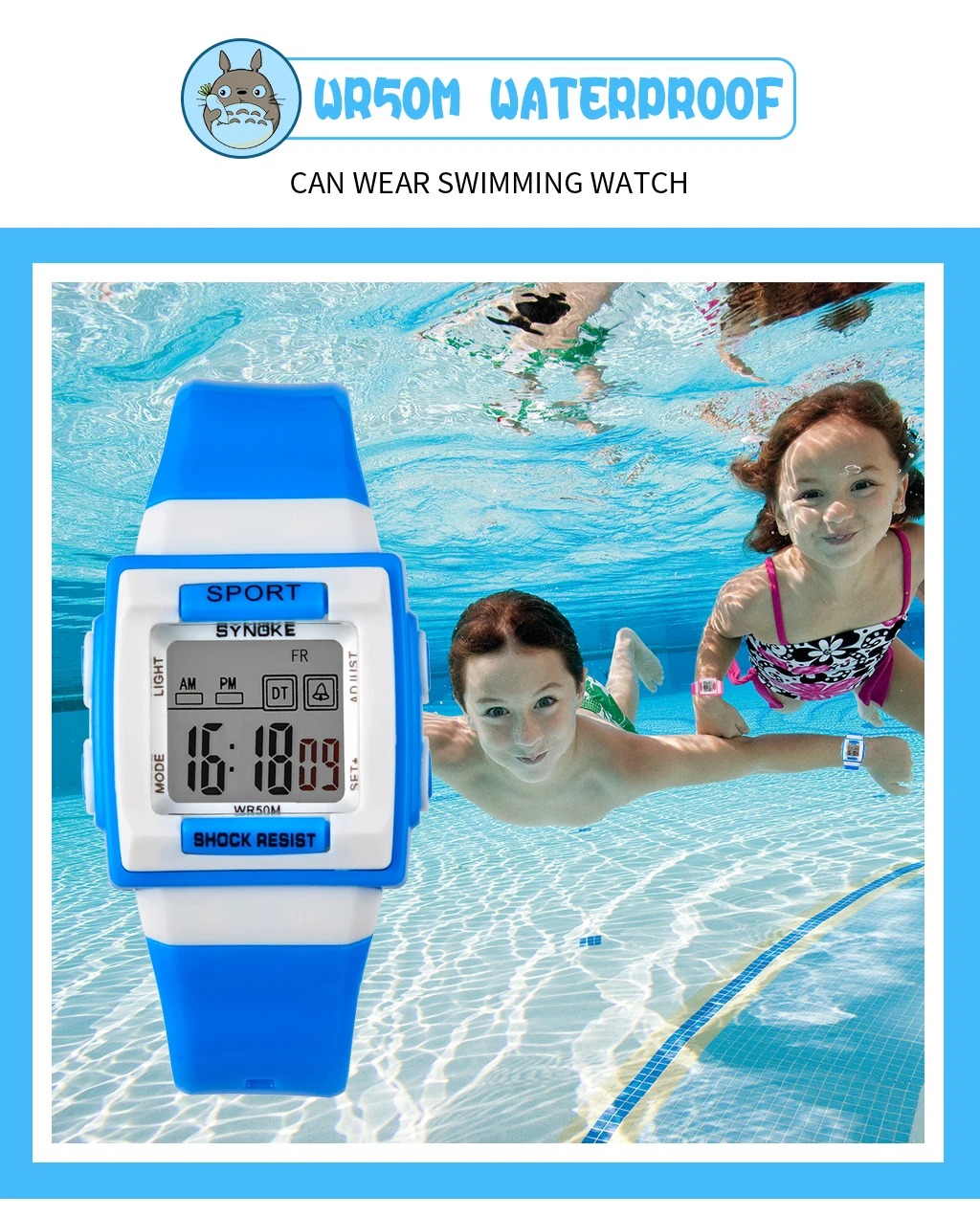 Часы детские электронные, водонепроницасветильник, 50 м, для мальчиков и девочек