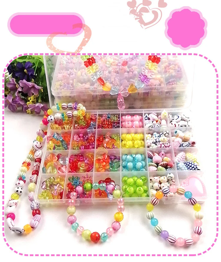Сделай Сам, игрушка ручной работы из бисера с комплектом аксессуаров, Детские креативные ювелирные изделия с 24 ячейками для девочек, развивающие игрушки, подарок для детей