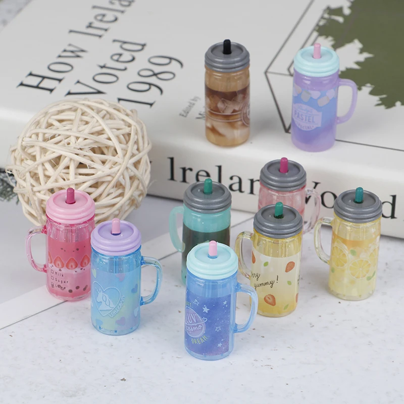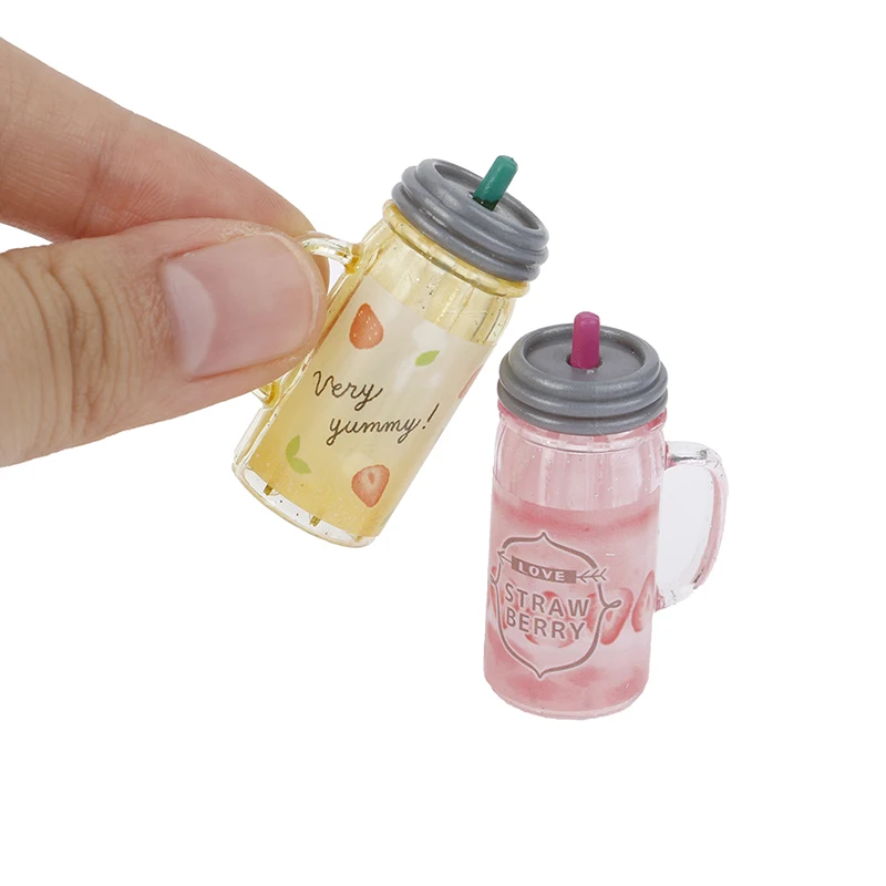 1:12 Кукольный домик мини-Бутылочки для напитков чашка для сока Миниатюрные аксессуары бутылка подарки фрукты из смолы чашка для чая моделирование напитков модель игрушки