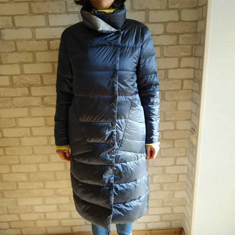 Женский Двухсторонний пуховик, Длинная зимняя куртка с высоким воро...