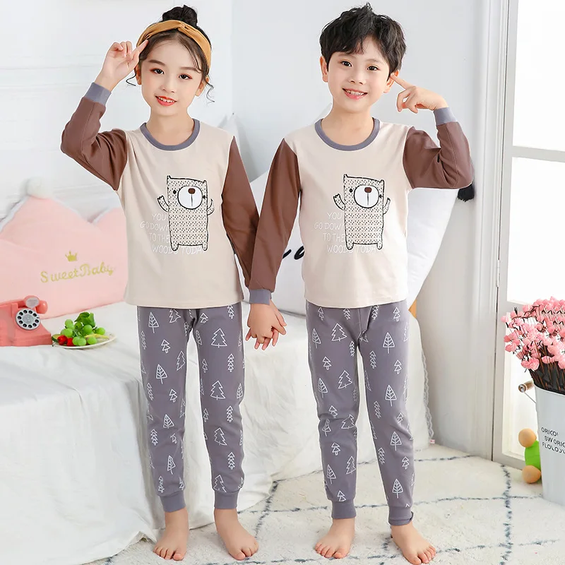 2022 зимняя Пижама для мальчиков и девочек, одежда с длинным рукавом, детская одежда, одежда для сна, хлопковые Пижамные комплекты для детей 4, 6, 8, 10, 12 лет