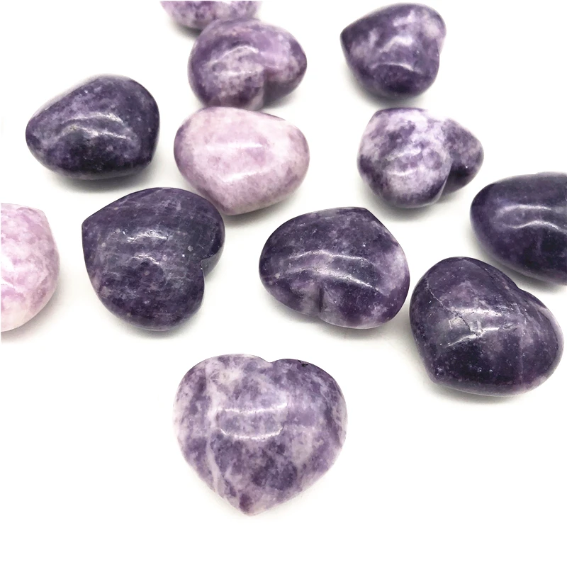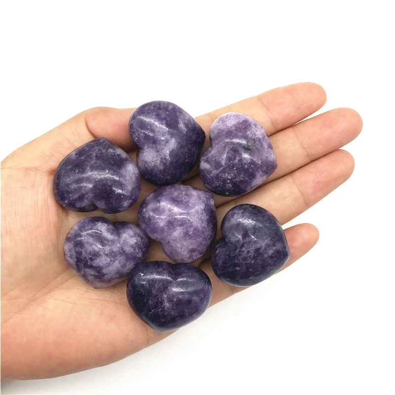 Натуральный фиолетовый лепидолит в форме сердца, кварцевый кристалл рейки, лечебный камень, натуральные камни и минералы для творчества, 1 шт.