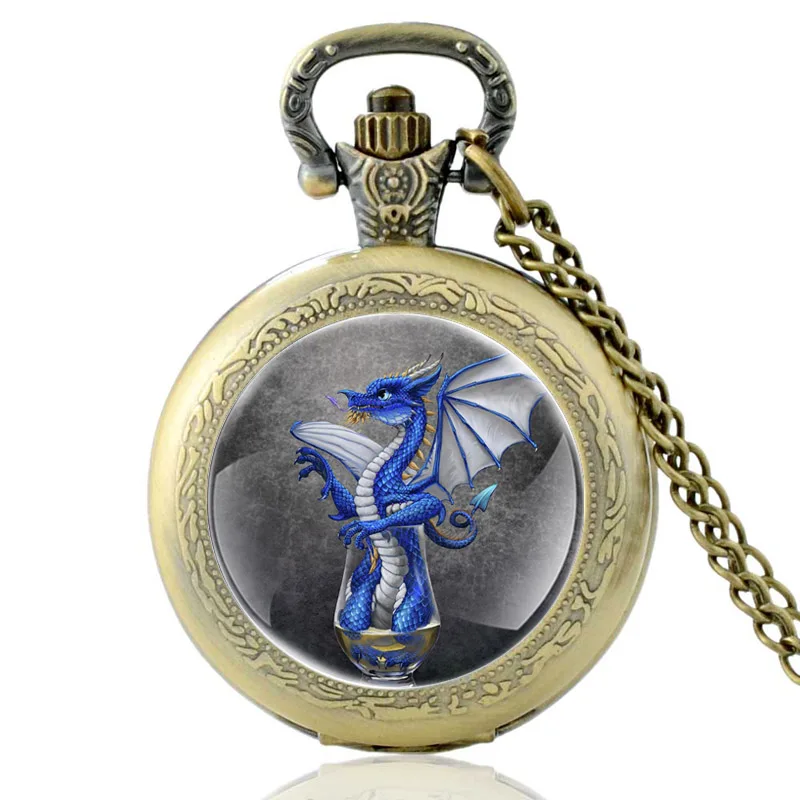 Милый дракон в чашке, винтажные кварцевые карманные часы с рисунком дракона, мужские и женские очаровательные часы с кулоном и ожерельем, часы