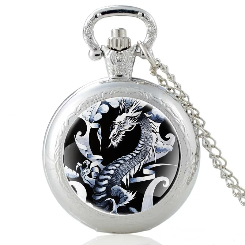 Классические винтажные кварцевые карманные часы с японским рисунком дракона, мужские и женские часы с подвеской и ожерельем