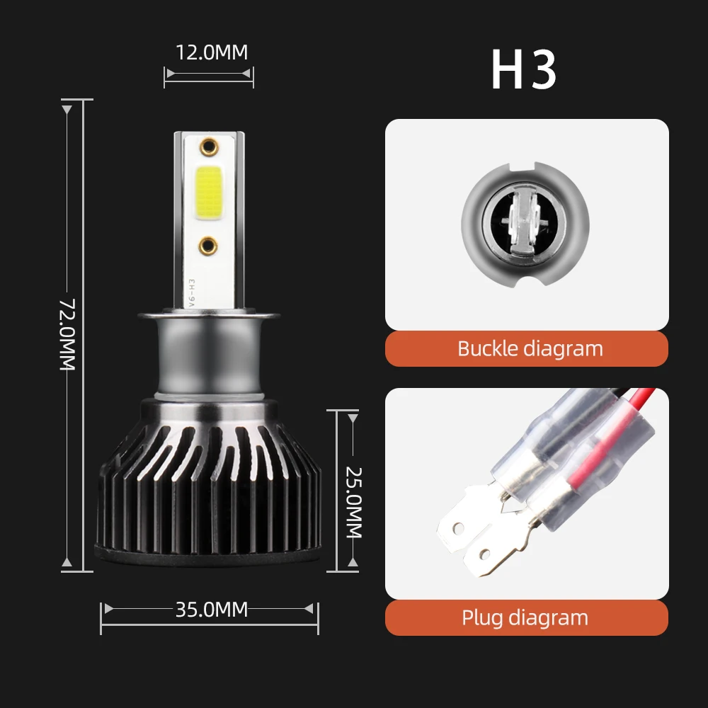 Используется высококачественная светодиодная микросхема (чипы COB), высокая светоотдача.72 Вт @ 12000 лм за пару, в 5 раз ярче галогенных лампЧипы COB, высокое качество и долгий срок службы; Прочная фиксация заклепок(Многие другие чипы автомобильных фар фиксируются винтами; Их легко отвалить)