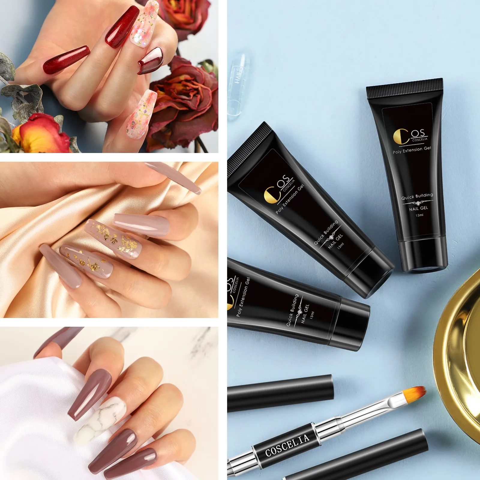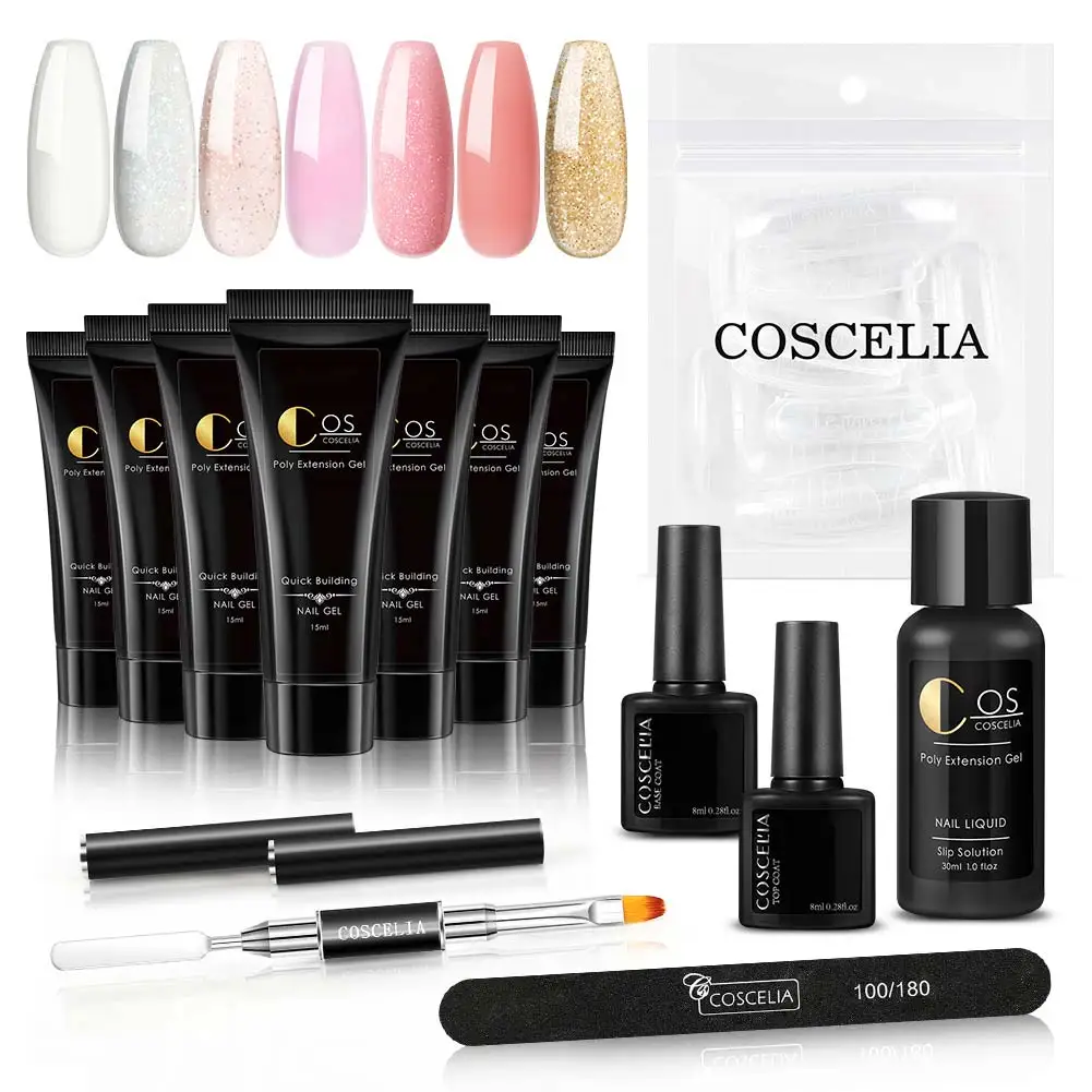 Полигель для ногтей COSCELIA, набор для наращивания ногтей, твердый желеобразный гель, набор инструментов для дизайна ногтей