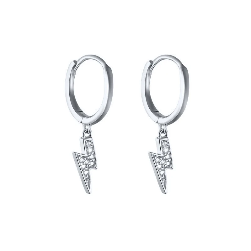 Женские серьги-кольца из серебра 925 пробы с подвеской в виде молнии