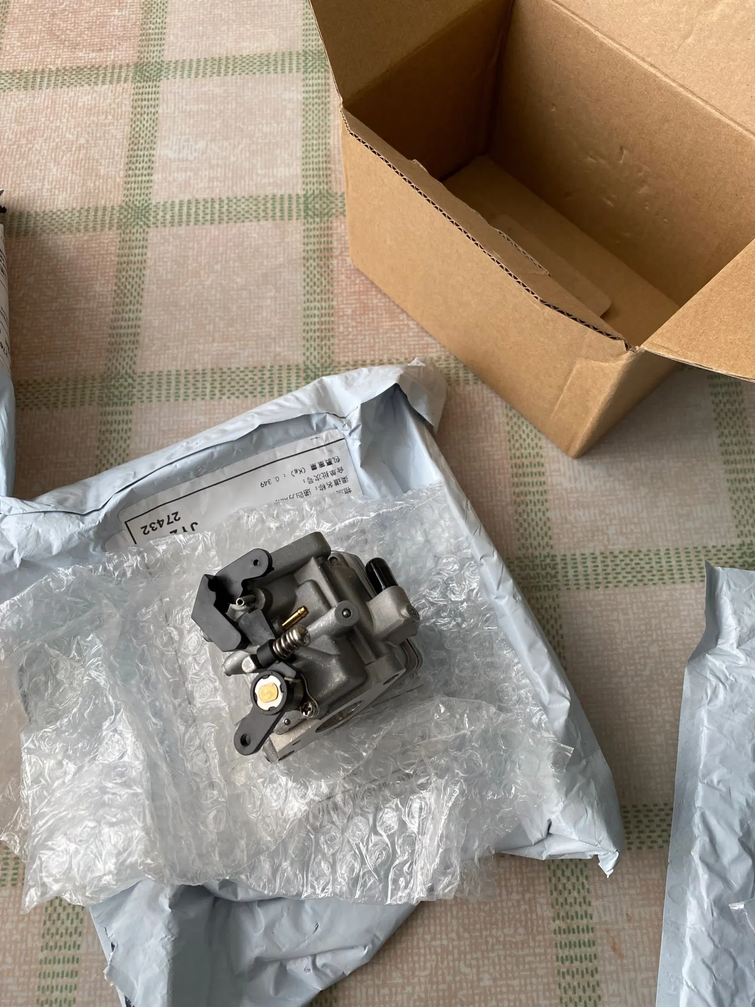 карбюраторы получил 12 декабря, упаковка не повреждена, карбюраторы визуально целые, но они не соответствуют оригиналу. это карбюраторы для 5 сильного 4 тактного мотора. отличия в диаметре дроссельной заслонки должно быть у 6 сильного 21 мм а у этих 19 мм и меньше на 3мм диаметр диффузора. так что как обычно нае..ли узкоглазые. но все равно эти карб лучше чем родные 4 сильные. у них еще на 3 мм меньше диаметр диффузора. хотя я не понимаю ведь у них карбюраторы для сузуки дф 6 и они соответствуют оригиналу по диаметру дроссельной заслонки 21 мм и диаметру диффузора и отличаются от карбираторов на тохатсу ниссан и меркури только креплением тросика газа и подсоса. могли и для тохатсу ниссан сделать норм 6 сильные карб с дтаметром дроссельной заслонки 21 мм