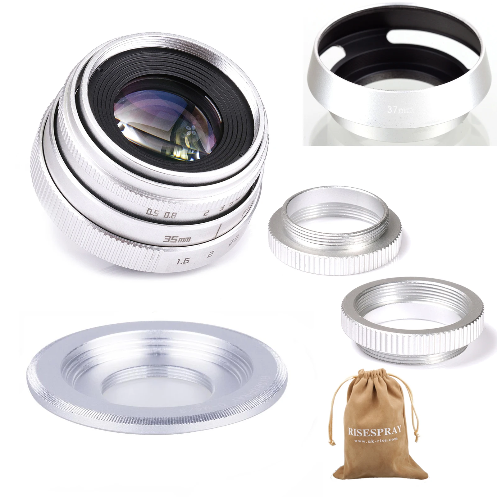 Серебристый мини-объектив 35 мм f1,6 APS-C CCTV + переходное кольцо + 2 макрокольца + бленда объектива для PanasonicO lympus Micro43 M43 беззеркальная камера