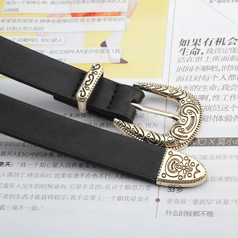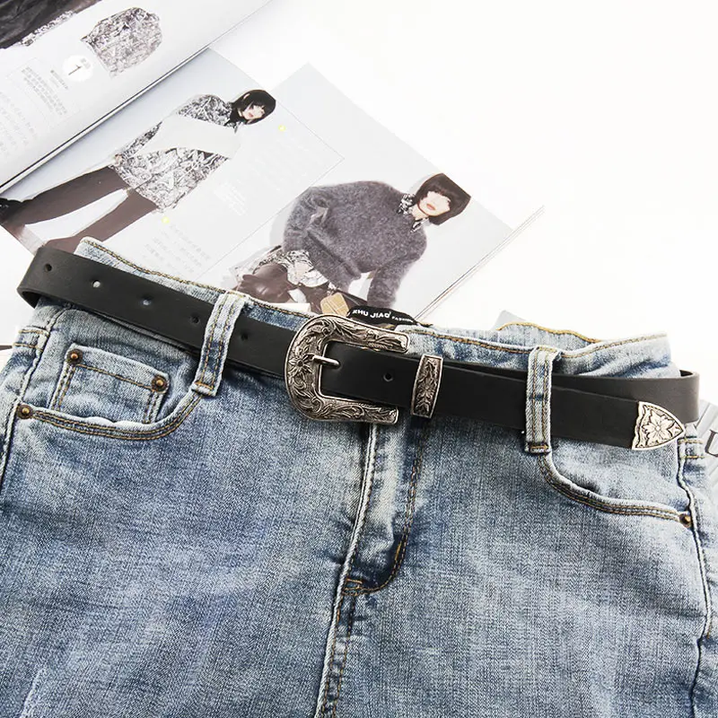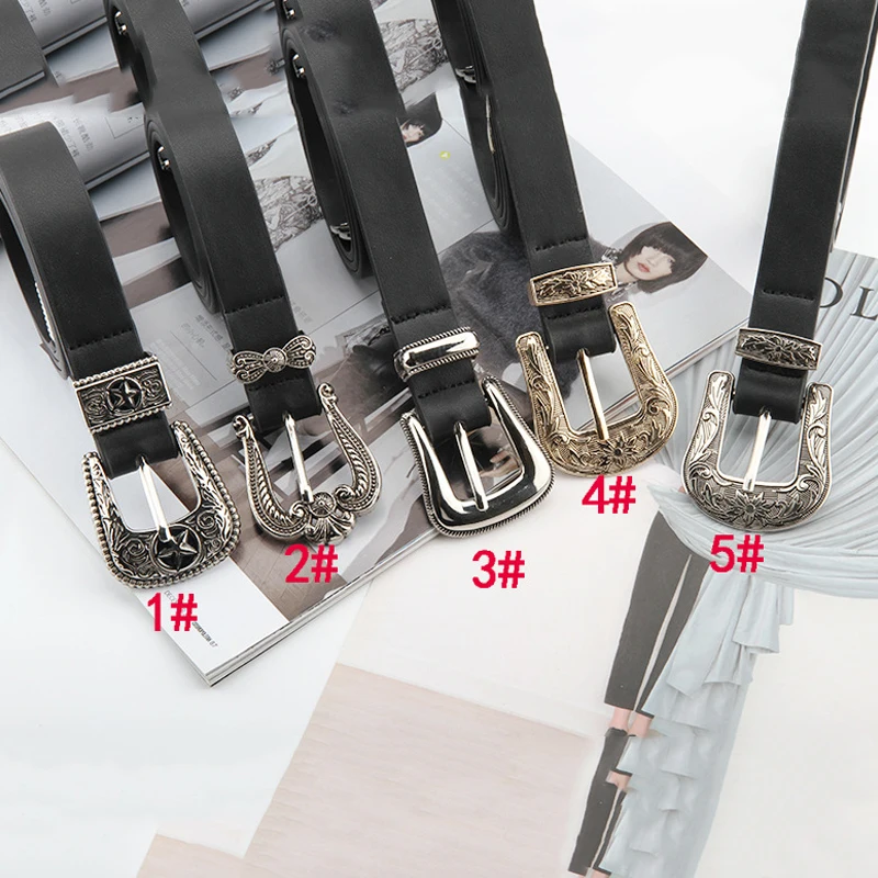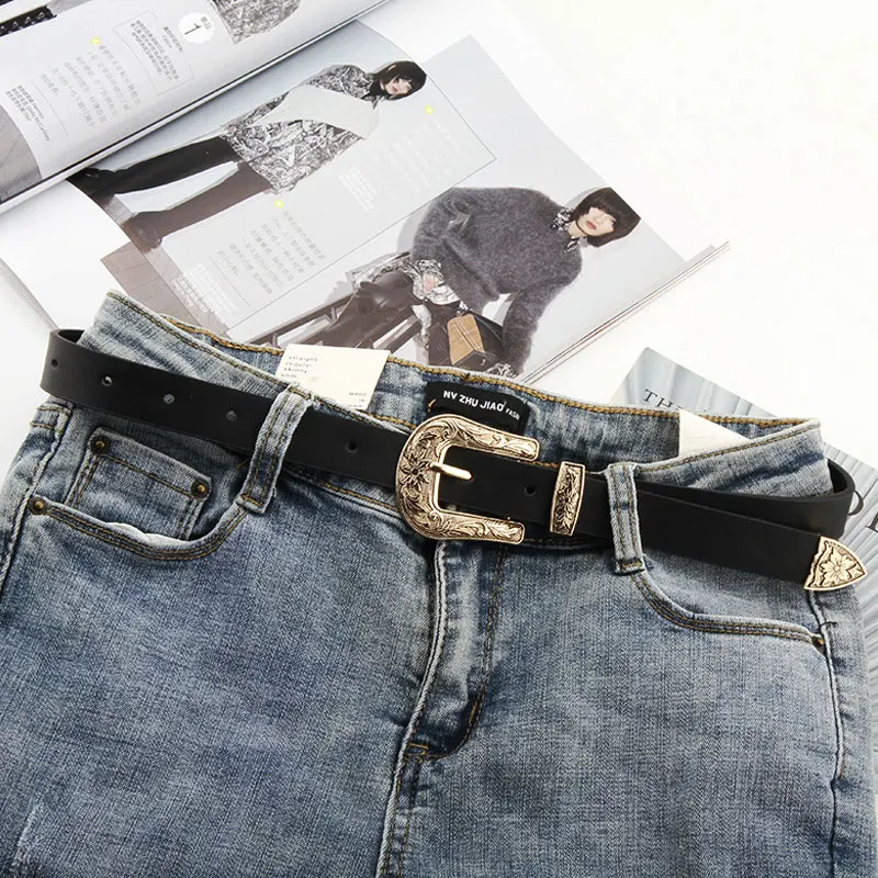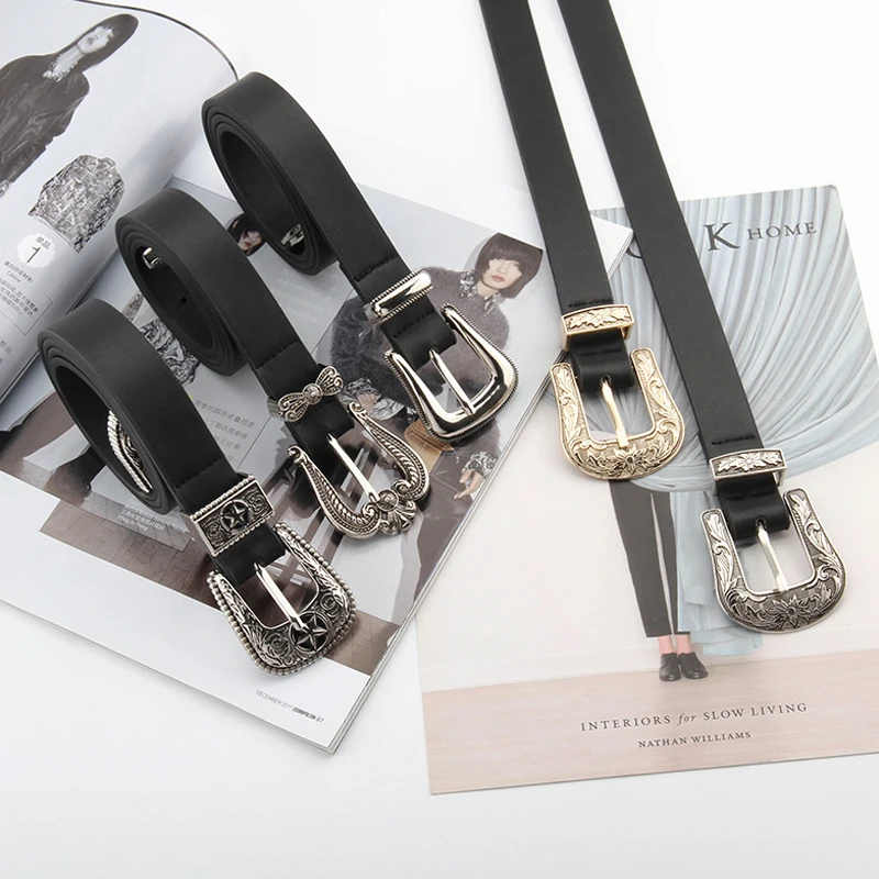 Ремень женский винтажный в готическом стиле, дизайнерский пояс с Резной Пряжкой в западном стиле для джинсов