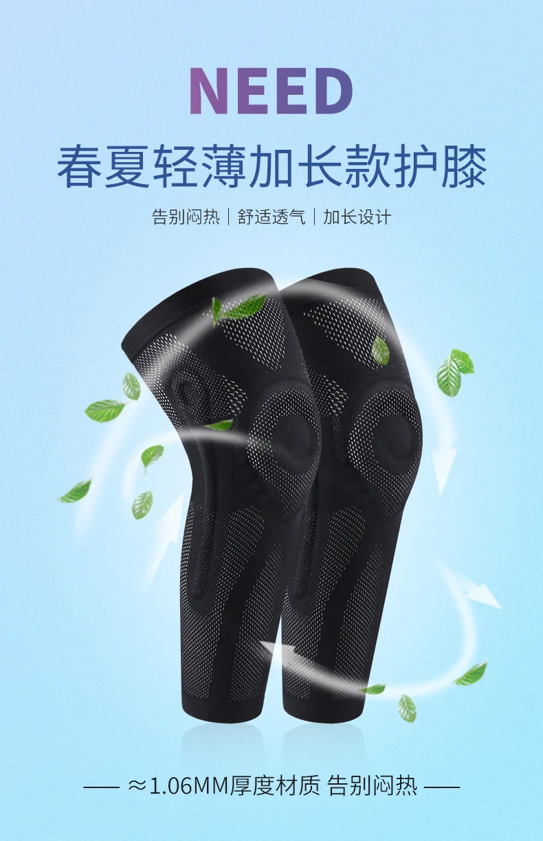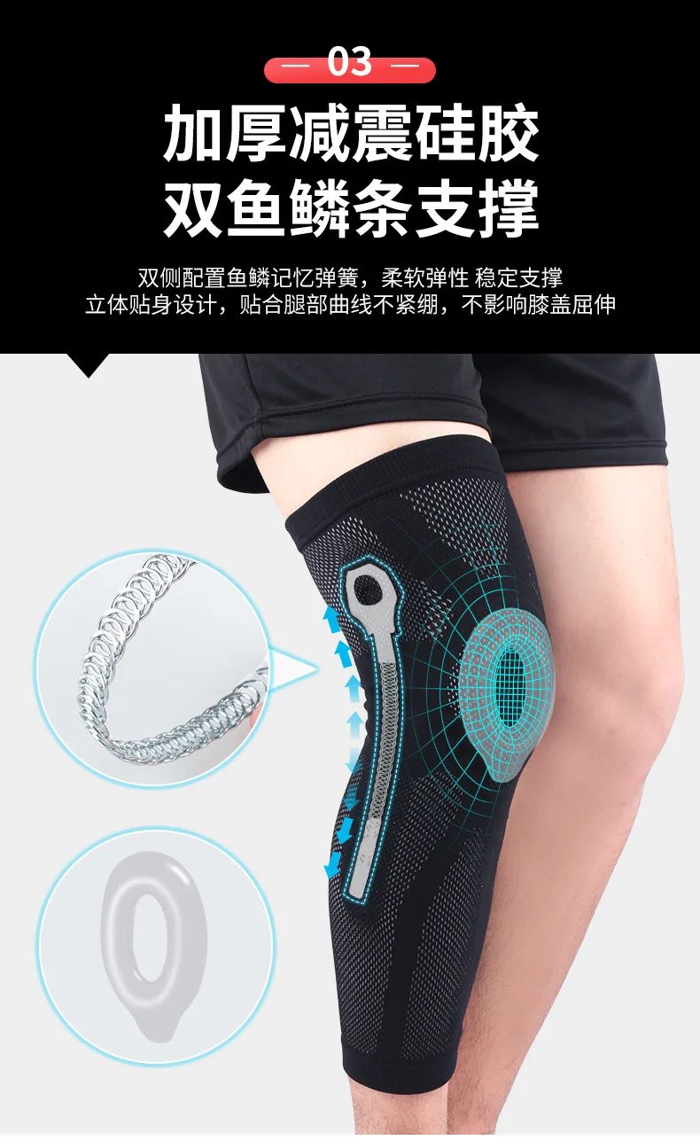 1 шт. тонкие удлиненные спортивные наколенники, Силиконовая накладка, пружинный наколенник, протектор коленника, фиксатор коленного сустава для бега, баскетбола, компрессионная поддержка колена